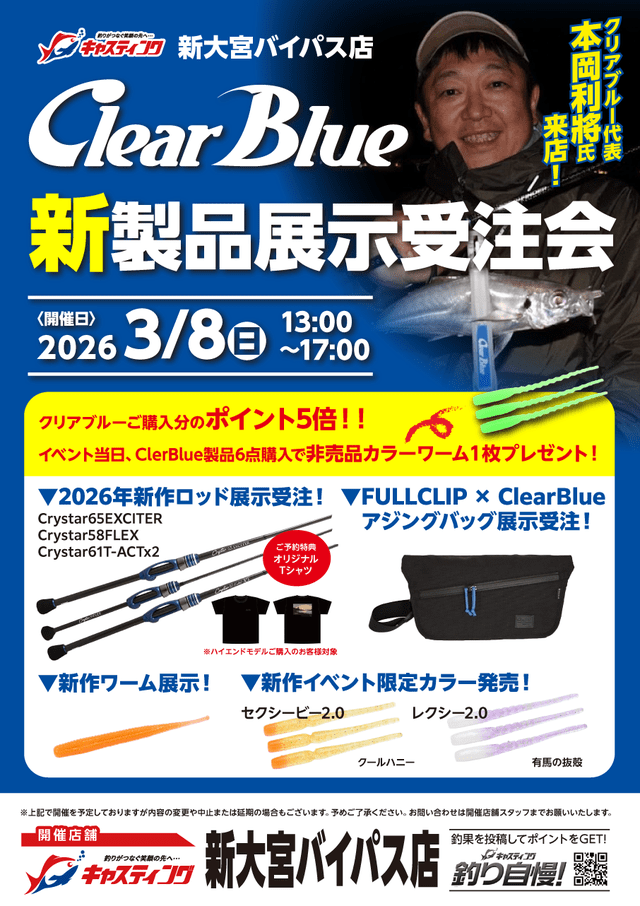 ■イベント当日、ClearBlue製品6点ご購入で非売品カラーのワーム1枚プレゼント
