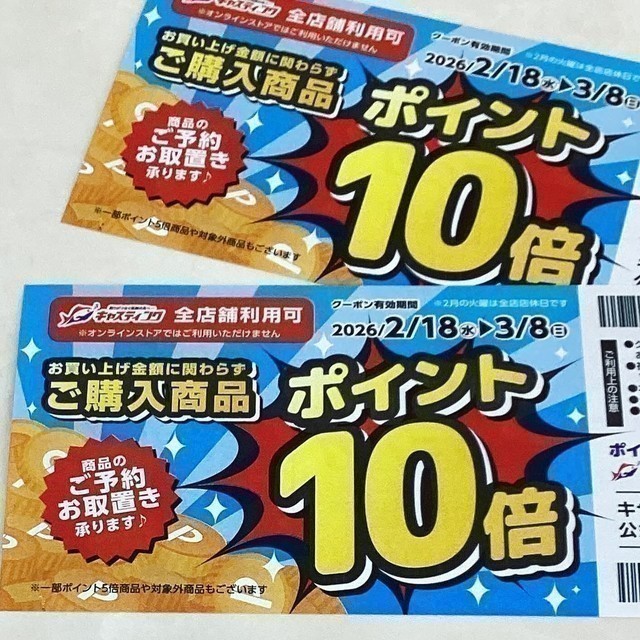 【ポイント10倍券】は2/18(水)~3/8(土)の期間ご利用いただけます♪《配布期間は2/15日)まで》