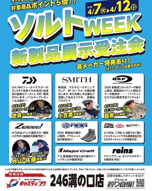 土曜日13-19時はダイワフィールドテスター世良 勇樹プロが来店!!
