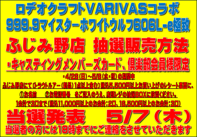 ロデオクラフト×バリバスコラボ《ホワイトウルフ606L-e極致》抽選販売