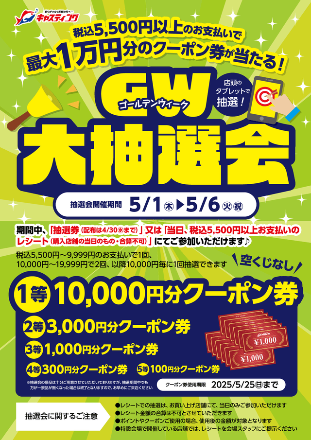 空くじなし!最大1万円分のクーポン券が当たるゴールデンウィーク恒例大抽選会を開催しました♪