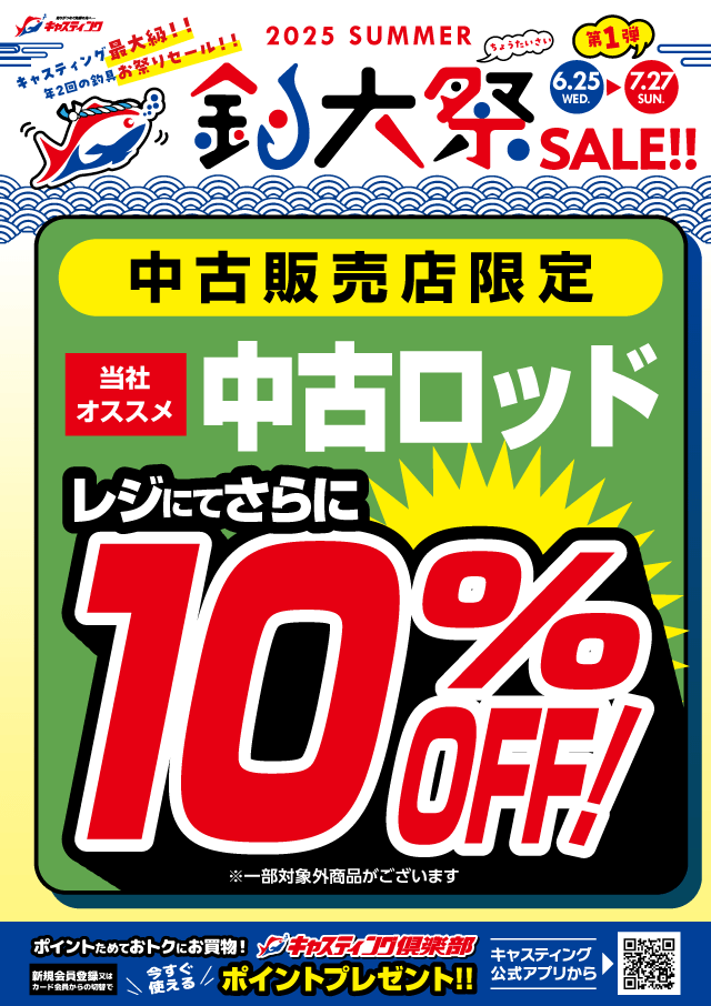 6/27(金)から【2025夏の釣大祭(ちょうたいさい)】で中古ロッド10%OFF!! 探していたロッドが見つかるかもしれません!!