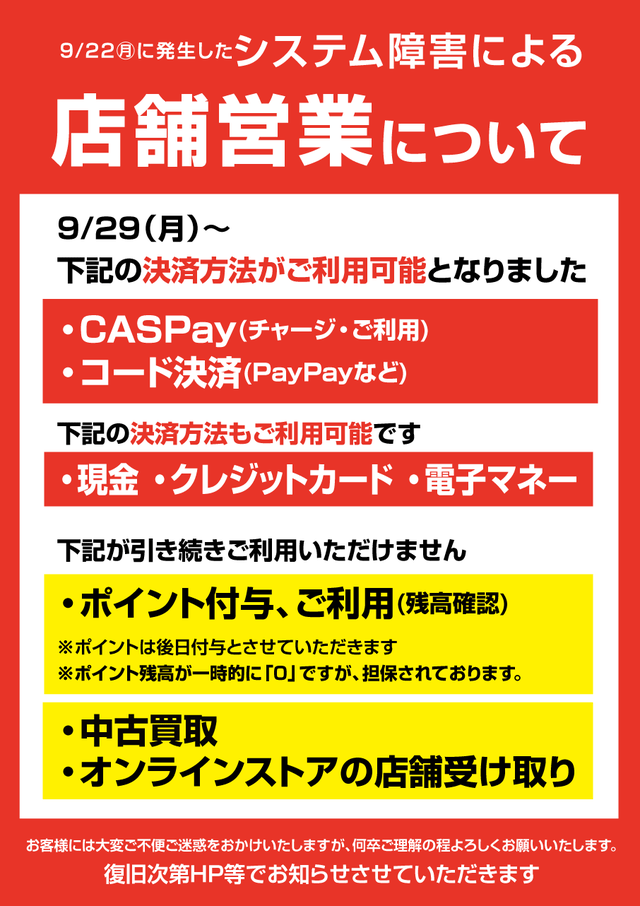 明日 9月30日(火)までとなっております。