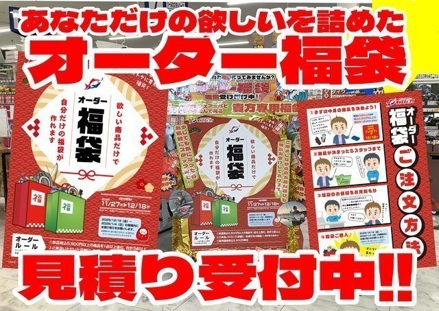 オーダー福袋に関するお電話・メールでのお問い合わせについては、対応いたしかねます。詳細につきましては店頭にてスタッフまでお問い合わせください。
